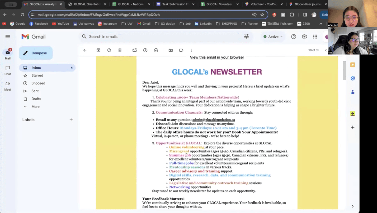 I decided to go through the onboarding process firsthand, including booking and attending the online orientation and receiving my own GLOCAL email address afterward. Throughout the process, I encountered frustrations like unclear directions and excessive documentation.